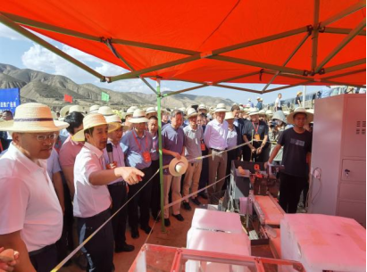 中国·定西马铃薯大会现场 国家农机部和省农业厅、企业代表参观切种机演示