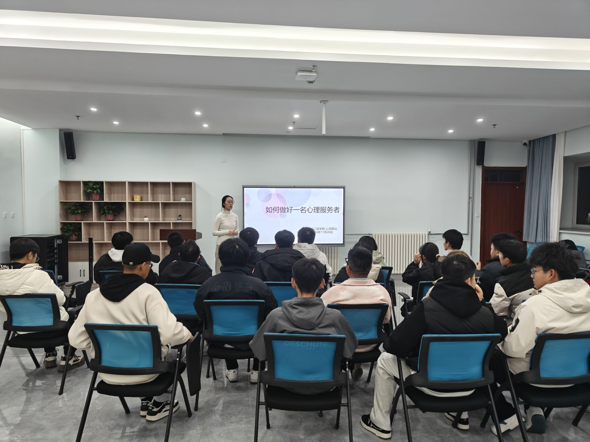 心理委员和宿舍心理联络员是公司心理健康教育四级网格化体系中的重要组成部分,是公司与班级同学间沟通的桥梁和纽带,为提升心理委员和宿舍心理联络员的专业素养和工作能力,更好的服务员工,365英国上市公司心理辅导站于11月26日晚19:30在彭家坪校区老员工活动中心523团体辅导室举办心理委员和宿舍心理联络员培训,2024级心理委员及各班宿舍心理联络员代表参加,本次培训会由心理辅导站站长刘阳老师主讲。
