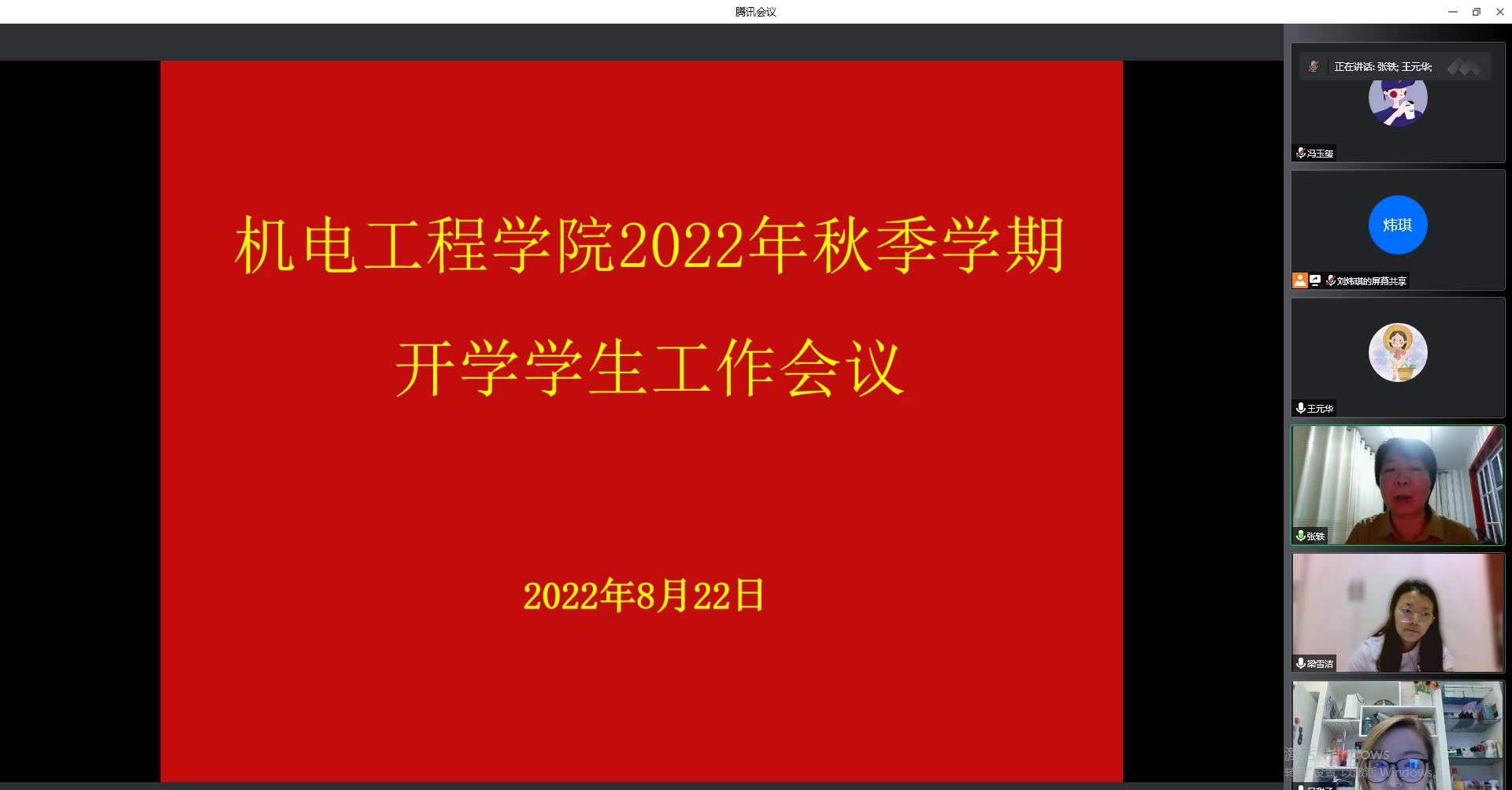 8月22日晚,365英国上市公司通过腾讯会议平台召开2022年秋季学期开学员工工作专题会,公司全体辅导员参加会议,会议由党委副书记张轶主持。