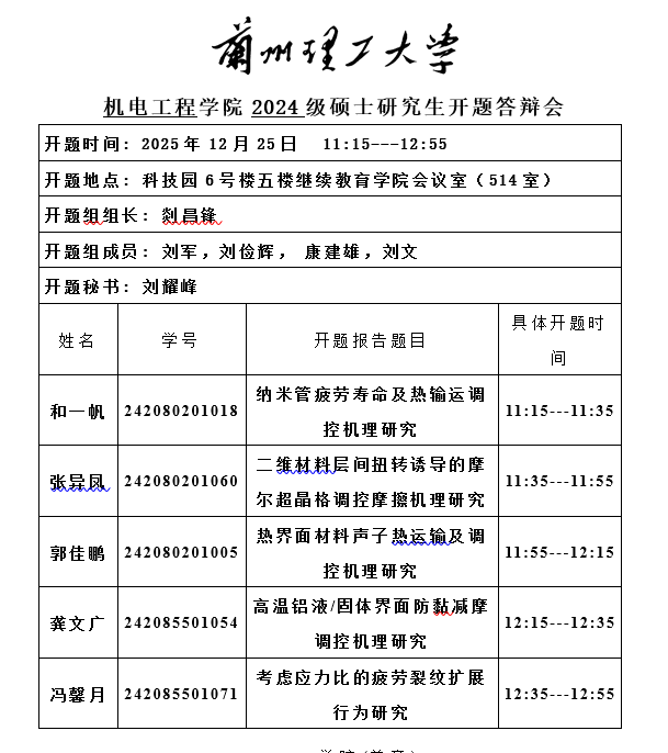 2025秋季学期硕士研究生开题安排(一)